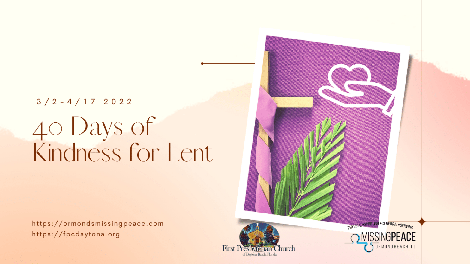 Over this year’s 40 days of Lent, we invite you to a very special way of observing the season. Instead of giving something up (fasting)-or, in addition to giving something up-take something on! Specifically, we ask you to commit a random act of kindness each day.