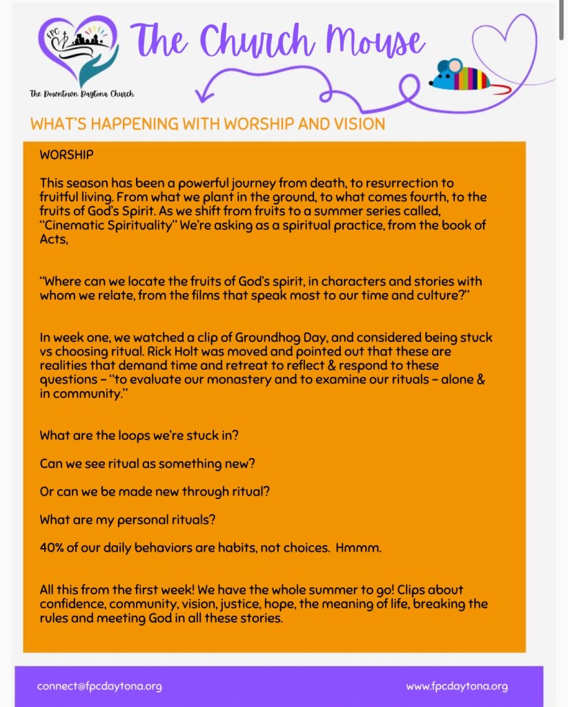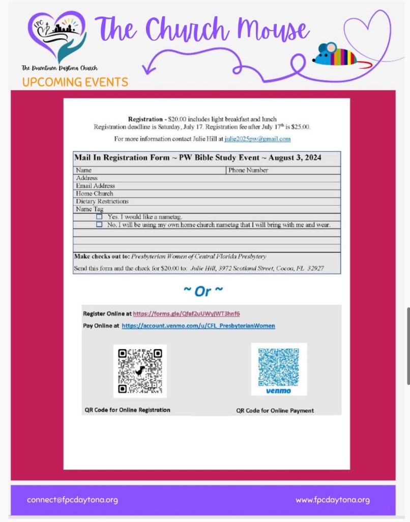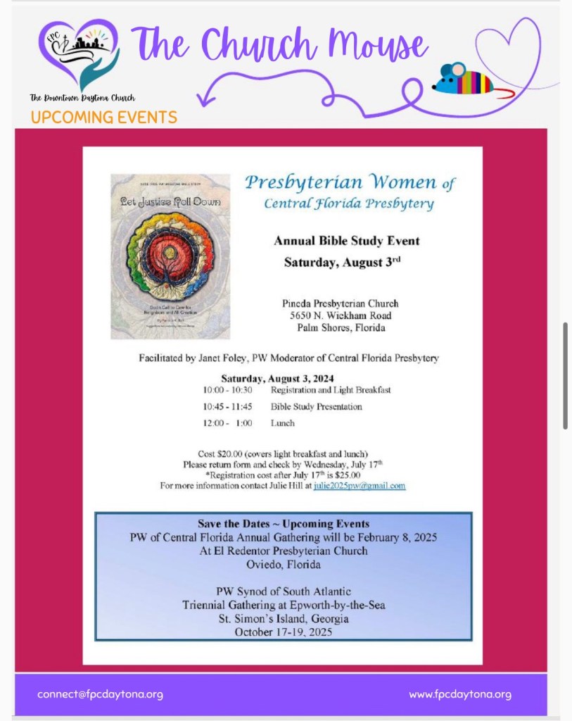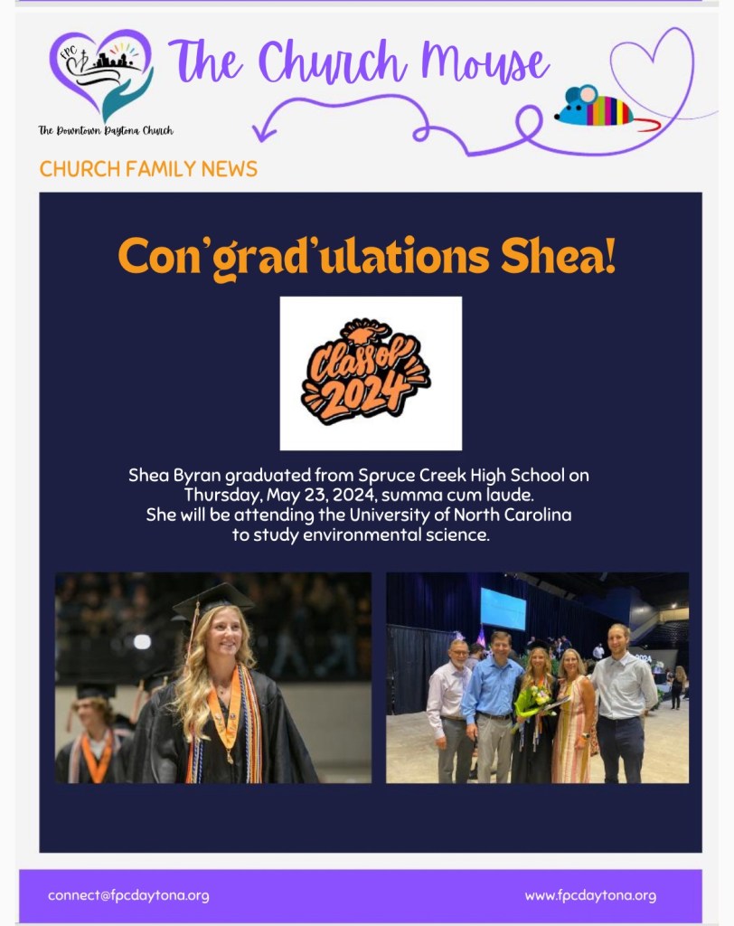 Church Mouse: June Posted byBeach Street Church - FPC DaytonaJune 10, 2024June 11, 2024Posted inUncategorized Share this: Share on X (Opens in new window) X Share on Facebook (Opens in new window) Facebook Like Loading...